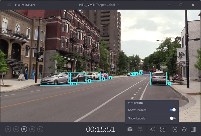 To call-out labels, toggle Show Labels on. This will provide names for each identified target (e.g. car, person).