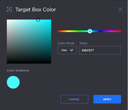 Target Box Color | #4bf8ff (teal) | To change the target box color: