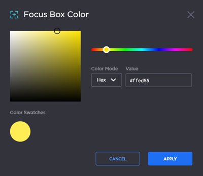 Focus Box Color | #ffed55 (yellow) | To change the focus box color: