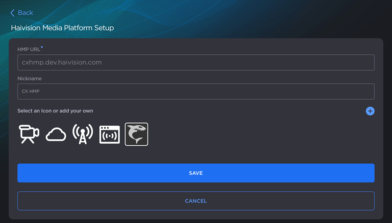 Enter a Nickname and select an Icon to identify the HMP.