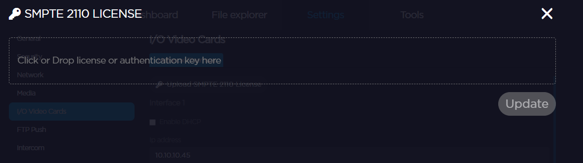 6. Click Upload SMPTE 2110 License.