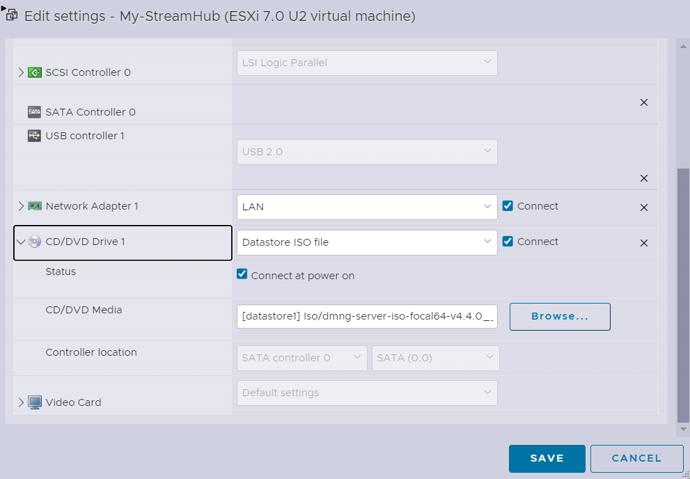 The following steps explain how to configure a virtualized StreamHub over VMware ESXI from an ISO file.