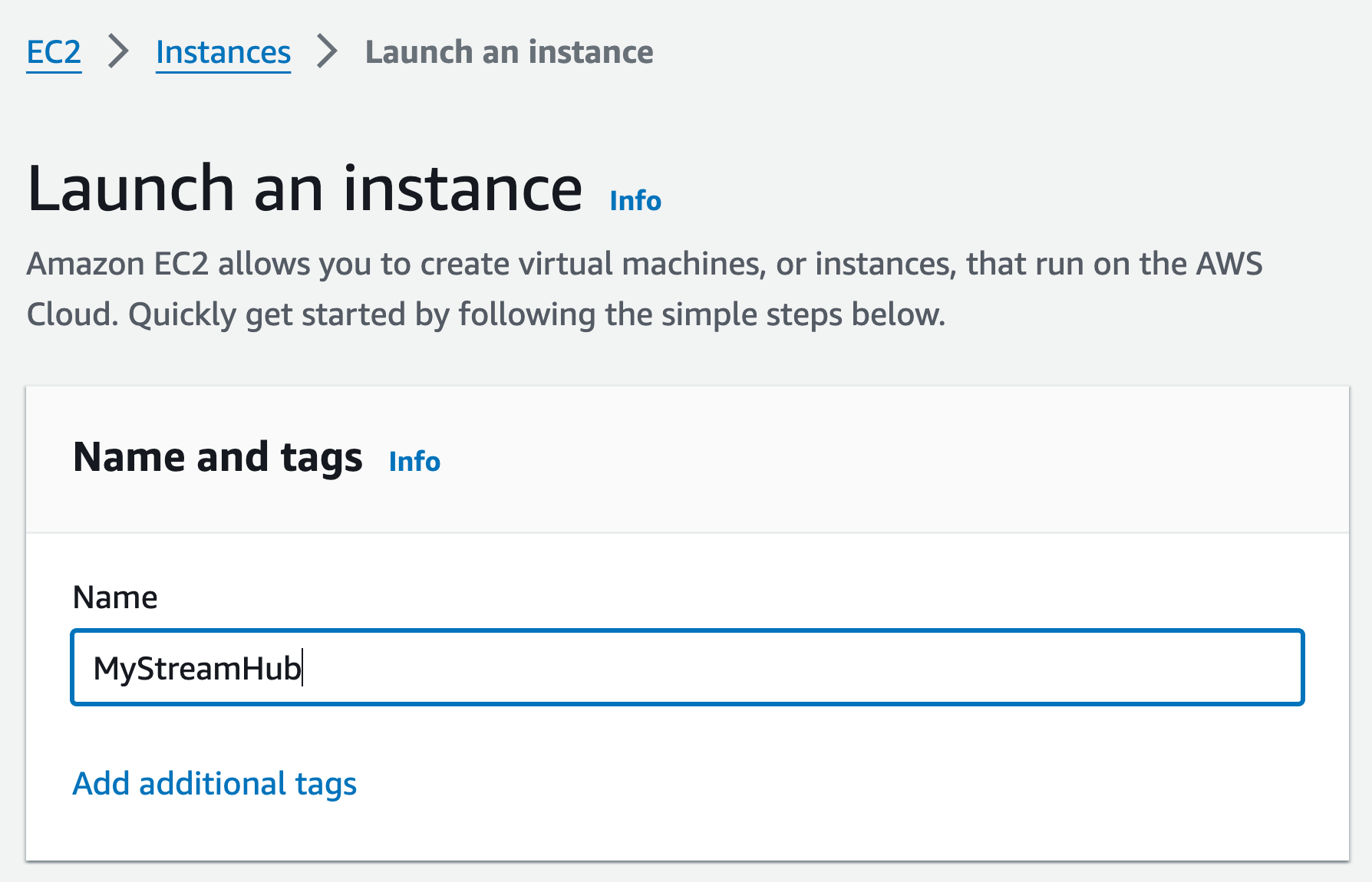 After a few moments, click on the Public IPv4 address link to open a new browser tab to the login screen of your new StreamHub virtual machine. Be sure to prefix the address with HTTPS. An invalid certificate warning may appear, which you can safely ignore (consult your IT admin to arrange for a valid certificate).