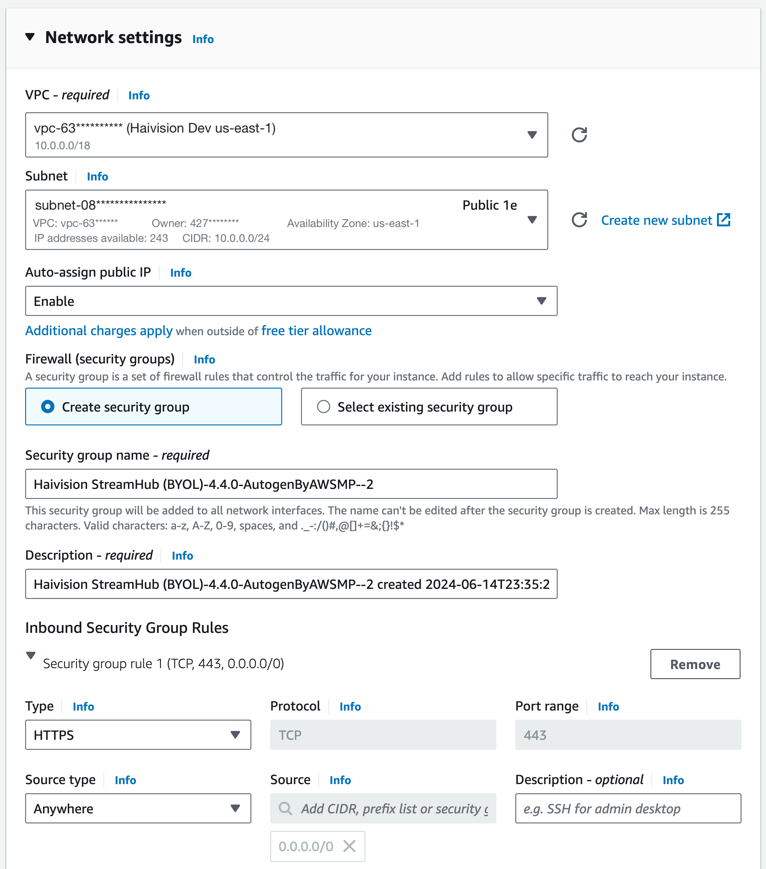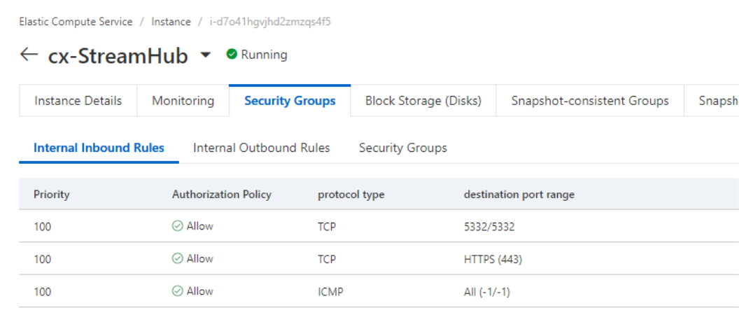 Set Inbound Security Group Rules according to the Network Port Requirements indications: