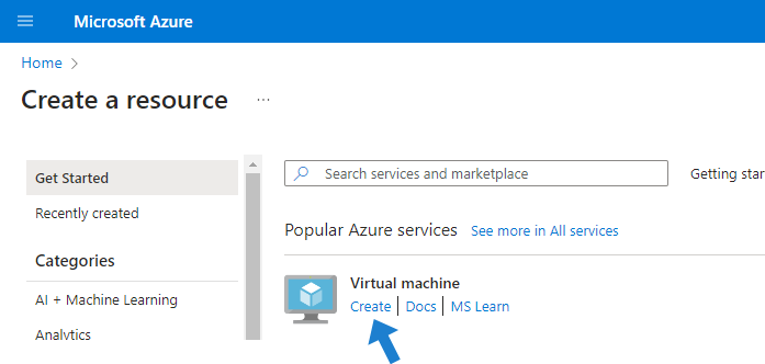 After you have successfully logged in to the Azure portal, Under Azure services click Create a resource.