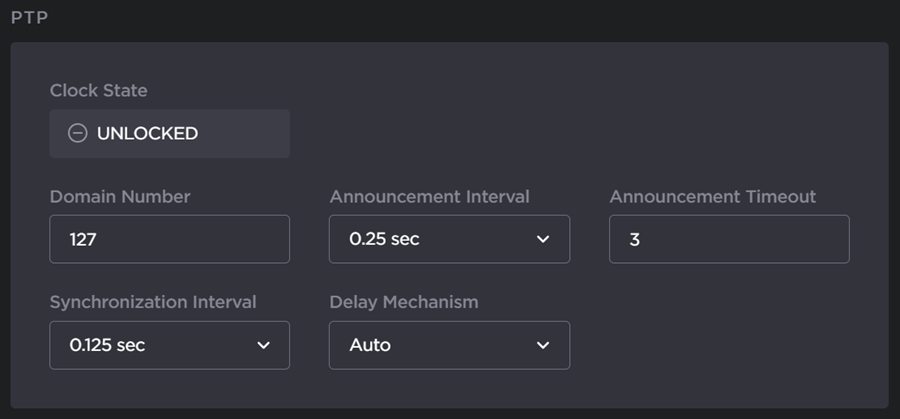 If the decoder personality is set to ST 2110, you can also view and configure the PTP settings from the Date and Time page.