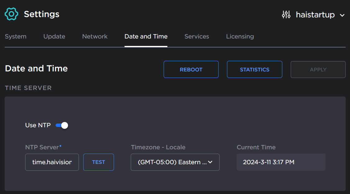 To view statistics for the NTP server, click Statistics. For details, see NTP Statistics.