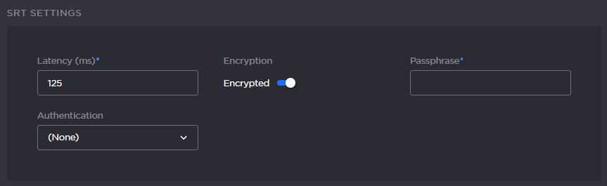 Configure the remaining SRT Settings. For more details, see SRT Stream Settings.