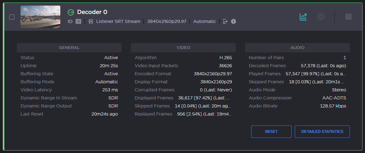 Set the statistics auto-refresh interval by selecting the number of seconds (5, 30, or 60) from the Refresh dropdown.