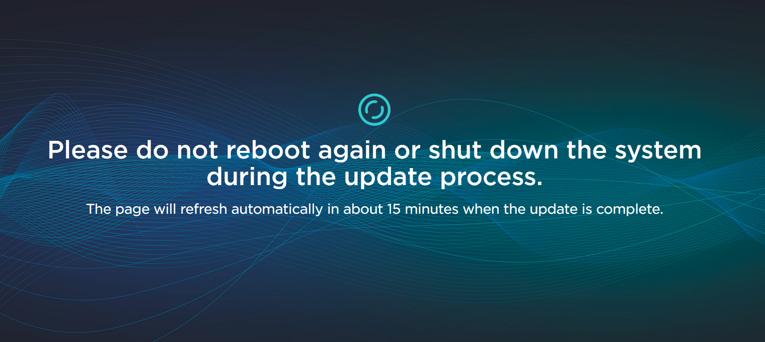 While the unit is rebooting, the Status LEDs will flash, and you will see a warning page (as shown following).
