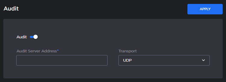 Type the audit server address and port in the Audit Server Address field. See Audit Settings for more details.