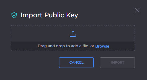 on an existing account.From the Account Settings, under Public Keys, click Add to open the Import Public Key dialog.