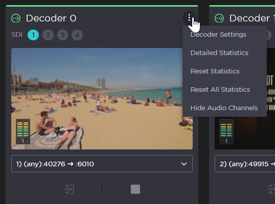 The dashboard also provides visual references to quickly asses the state of each decoder as well as the unit as a whole.
