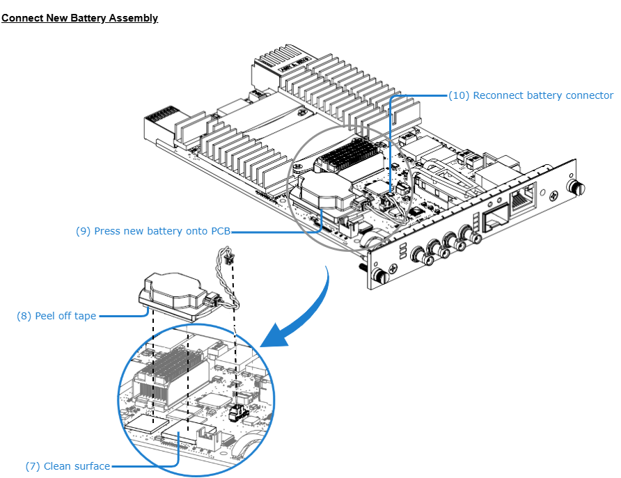 Your Makito X4 may have an older version of the battery assembly, identified by a blue or yellow plastic coating (as shown in the pictures below). It is recommended to replace this battery with Haivision battery assembly P/N: 084P089-900G. See Replacing a Previous Gen RTC Battery below.