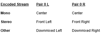 Downmix All Audio to Stereo | Off | Check the checkbox to enable downmixing of surround sound audio into stereo pairs, which are output over SDI or ST 2110 channels. The downmixing behavior can be summarized as follows: |
