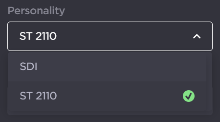 To change the decoder Personality, select either SDI or ST 2110 from the Personality dropdown menu.
