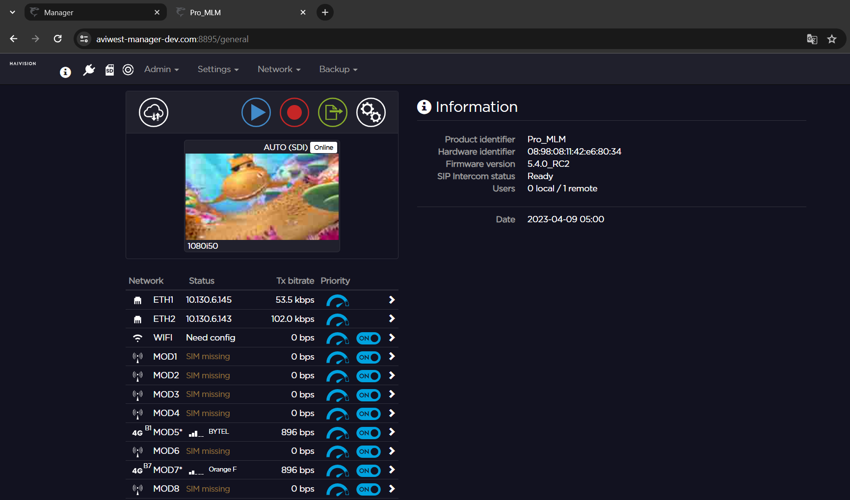 For more information about using the field units, please refer to the respective User Guides. Some actions performed from the remote interface result in disconnecting the field unit from the Manager.