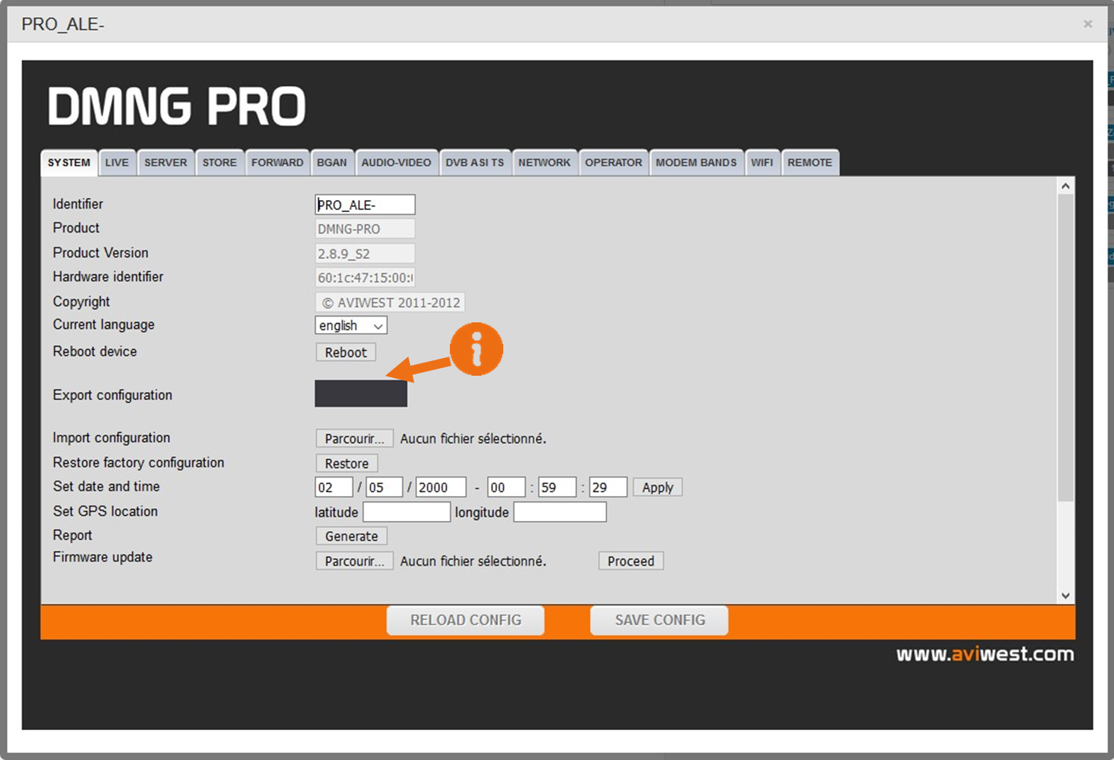 You can configure an online DMNG PRO through its Web Configurator. While it's operating, its configuration can only be read.