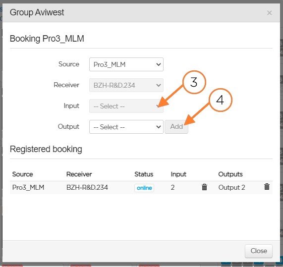 The output block indicates the booking that was set for the output. The booking button turned to