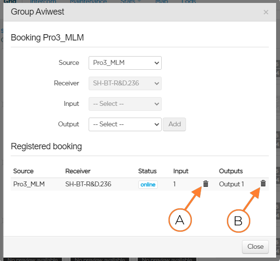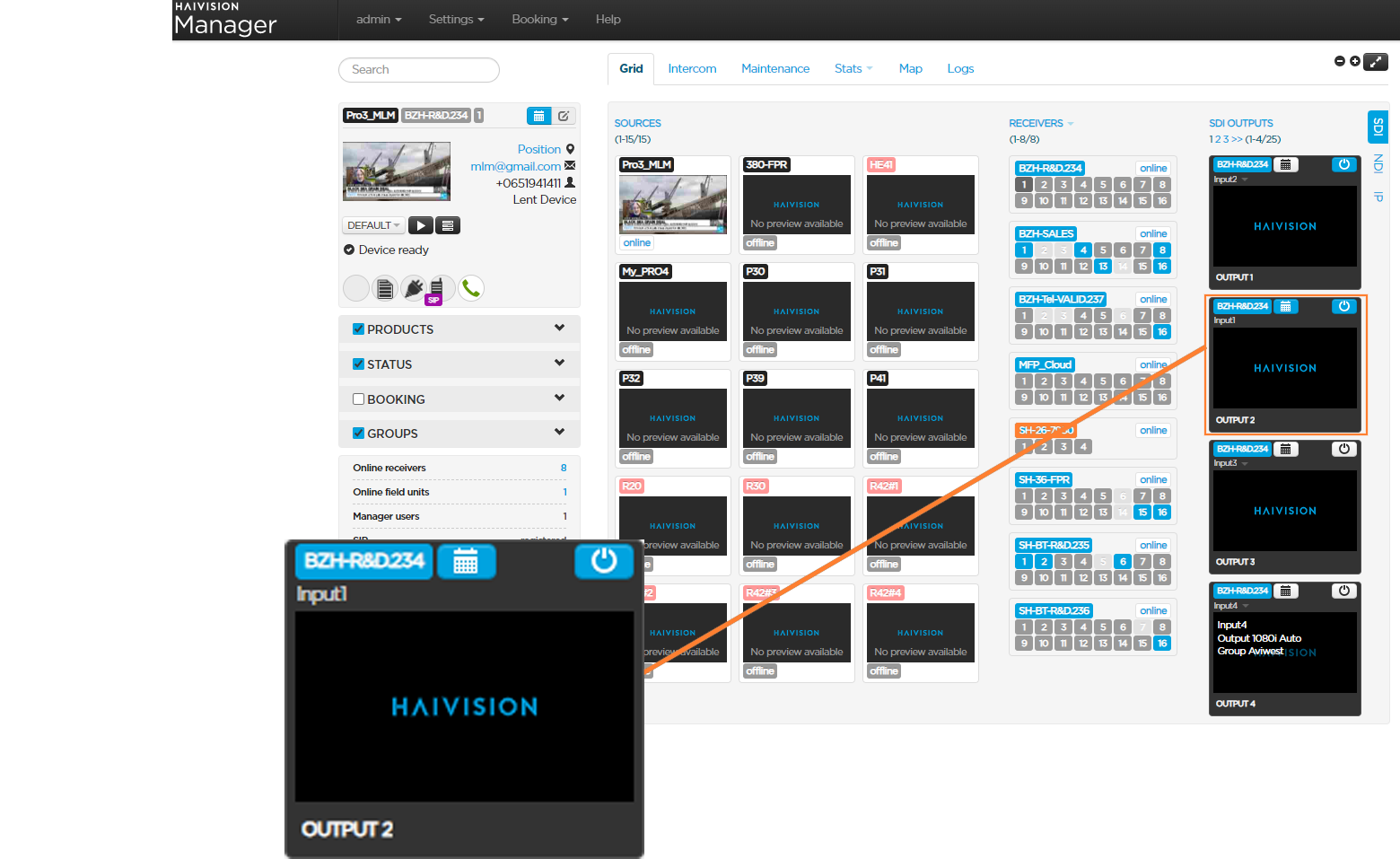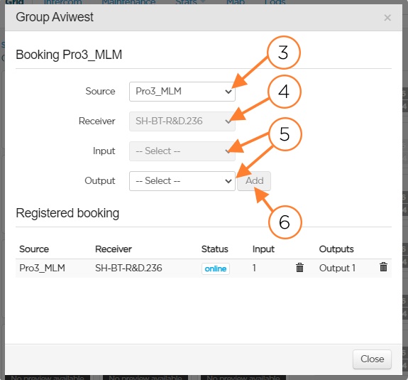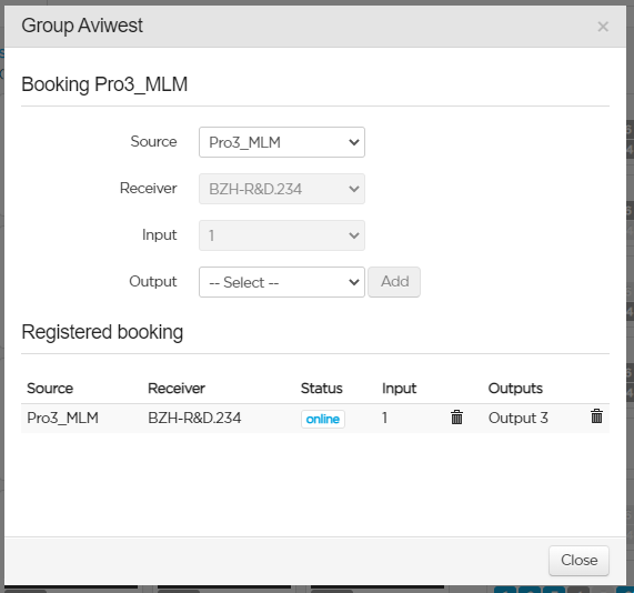 The administrator, and users with the "Booking" permission, can reserve a receiver's input and output(s) for live transmissions coming from a specific field unit. You can set a booking either from the Booking menu, the Field Unit panel, or the Output.