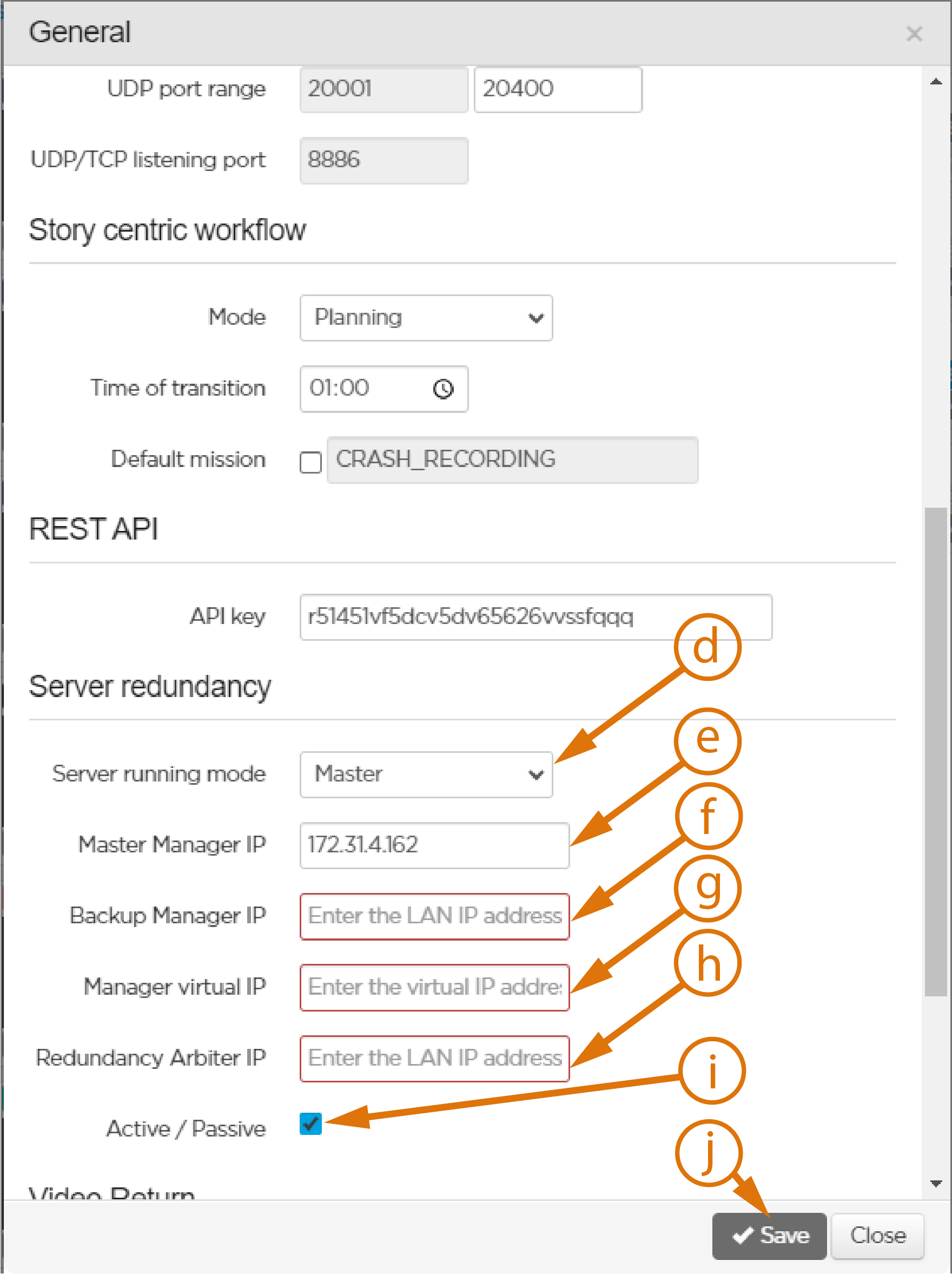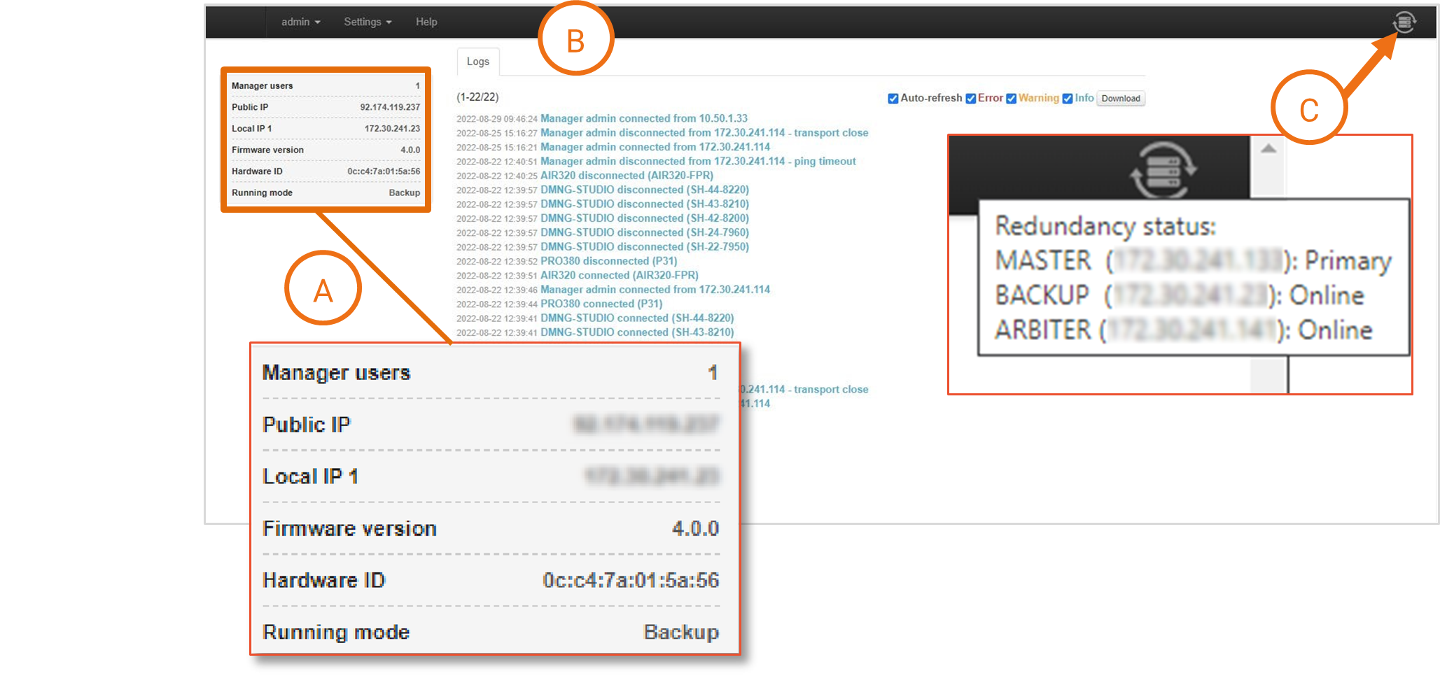 To configure a redundancy, you need to configure IP settings that ensure connection between all servers within the redundancy pool (Master, Backup, and Arbiter).