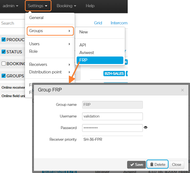 Make sure that there are neither field unit nor receiver associated with the group that you want to delete.