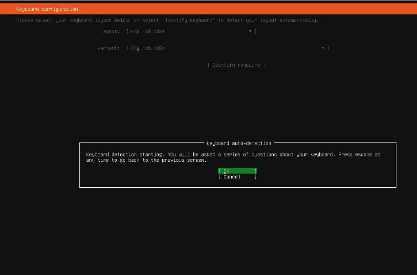Select OK, and press Enter to start keyboard identification.