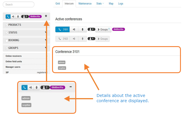 Under the Active Conferences section, click the conference number that you want to join.