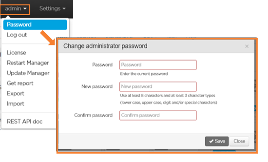 We strongly advise you to modify the password to log in to the Manager as administrator.