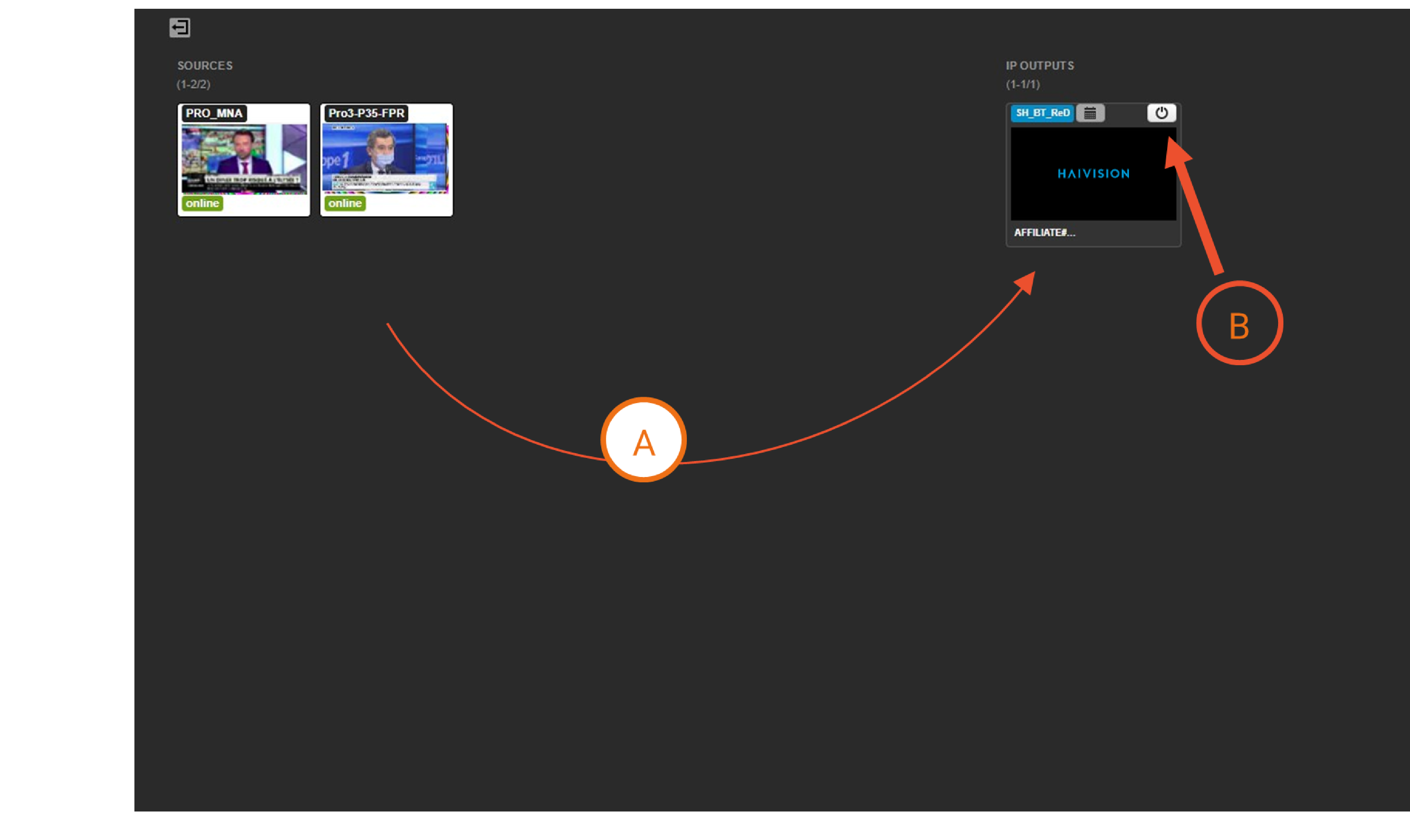 He can drag and drop a source towards the relay receiver's output to start a Live.