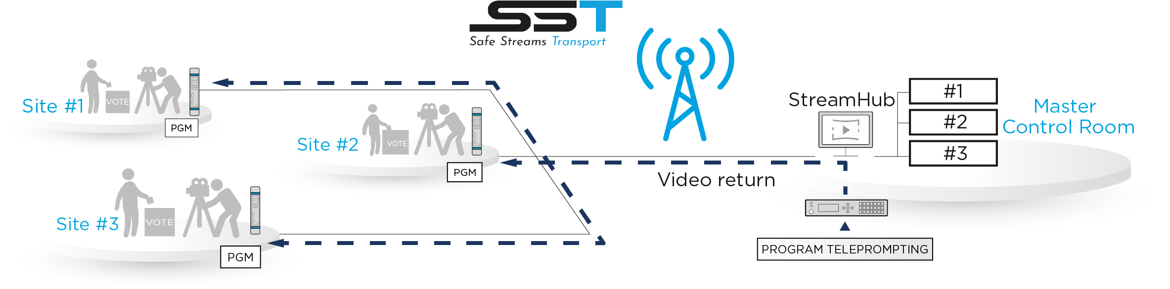 The Video Return feature allows Field Units operating on sites to receive live feeds, such as a program currently on air or a teleprompting from the Media Control Room even if a Live is running or not.