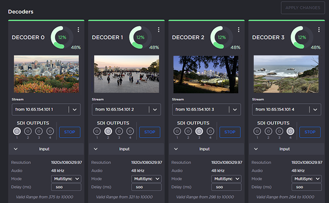 To observe Delay Ranges, wait 20 to 30 seconds while the decoder starts receiving the stream and gathering statistics. Then examine the MultiSync Delay Range on each of the decoders.