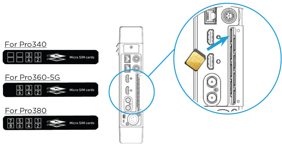 When using the unit in the USA, we recommend inserting SIM cards as follows: