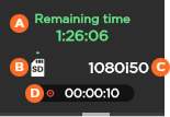 Remaining recording time possible on SD card Space used on SD Source Standard Record Duration