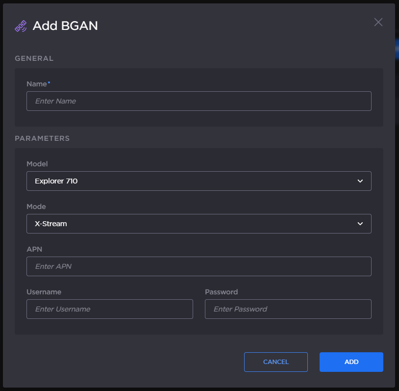 In the sidebar, click Network > Satellite > BGAN.