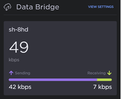 If connected successfully, the Data Bridge panel will show the connection's upload and download speed in kbps.