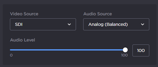 • From Video – When using the SDI or HDMI inputs , the audio is embedded in the video source.